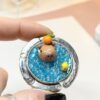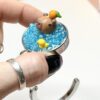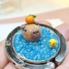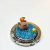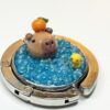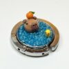 The top is hand-sculpted from polymer clay and finished with a glossy coating, featuring a small capybara sitting in a bathtub with a tiny duck and orange detail.