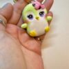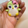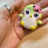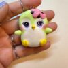 Each Frostling is sculpted by hand without molds, making every piece completely unique. This penguin features a pastel green body, large purple eyes, blushing cheeks, yellow feet, and a playful pink cake-glaze detail on its head.