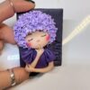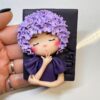 Lilac Flower Girl Portrait Magnet: Handmade Polymer Clay Fridge Art