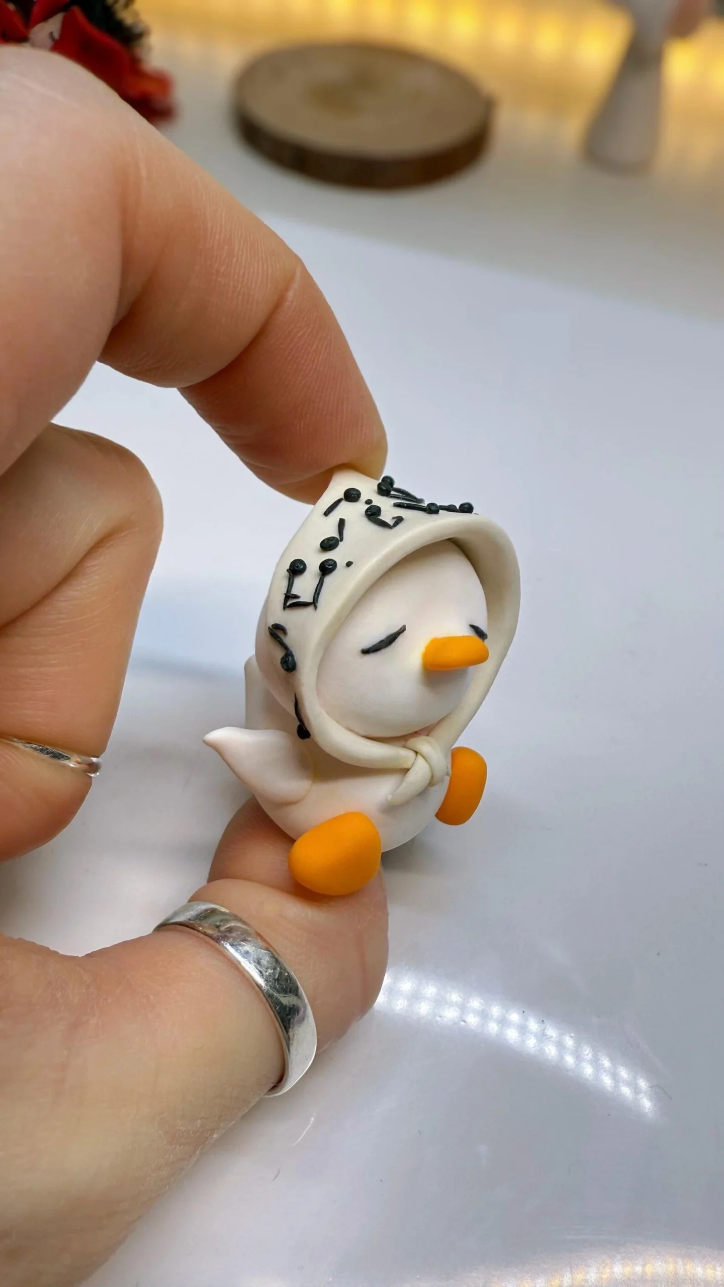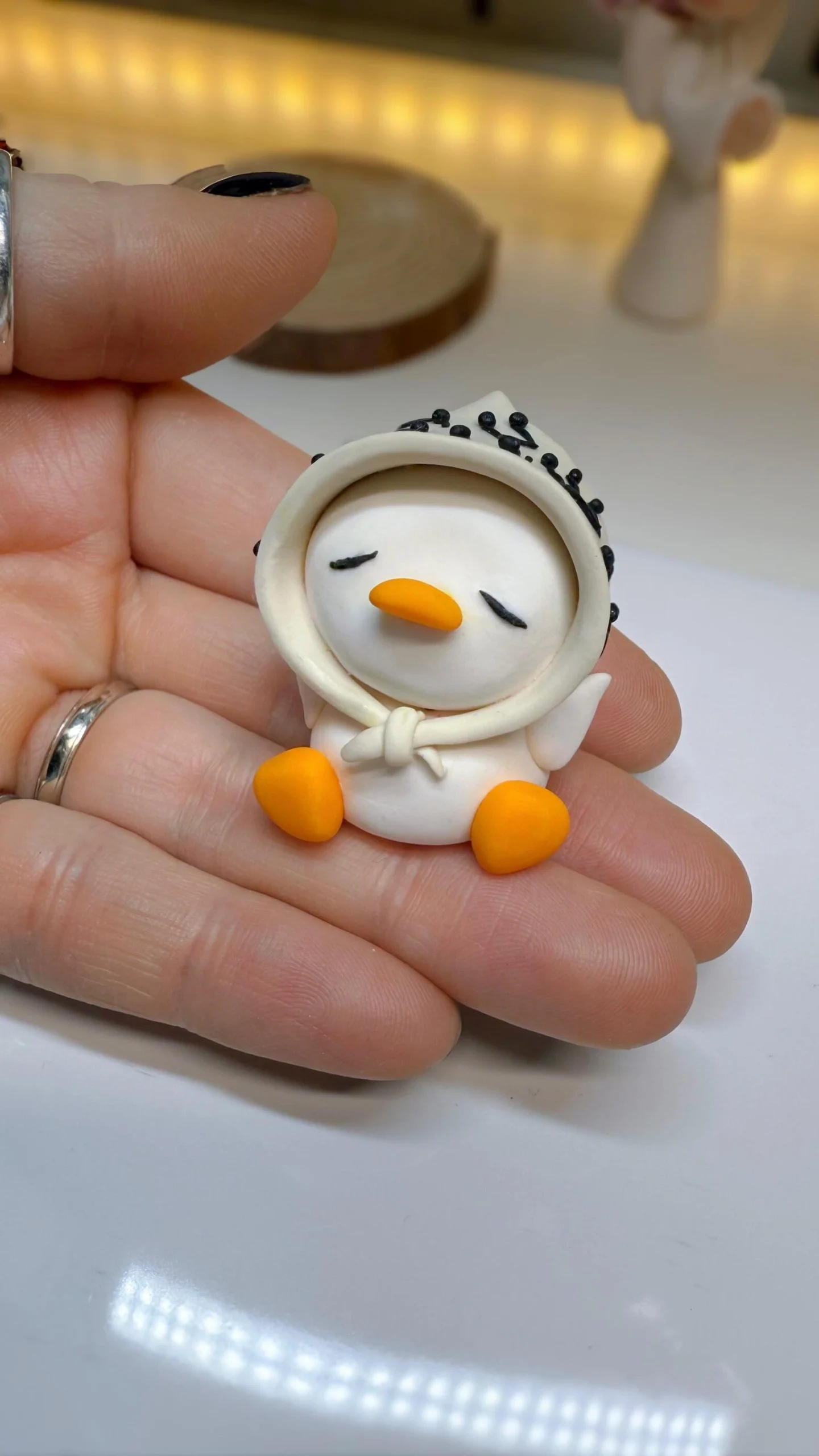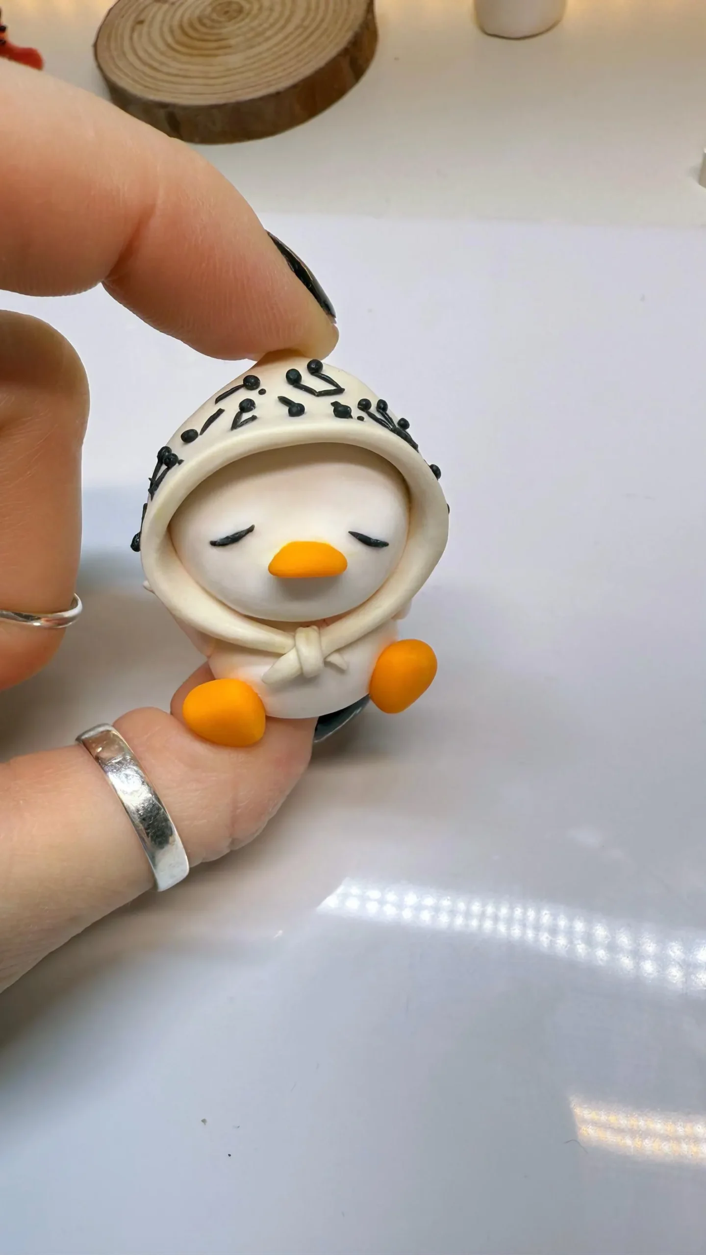 Each figurine is sculpted by hand, baked, assembled, and finished with care. No molds, no duplicates — every Meloquack has small variations that make her unique.