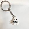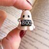 It’s handmade from polymer clay, holding a tiny “BOO” sign she/he made herself (probably after three failed versions), and finished with a stainless steel keychain. Glossy eyes, soft blush cheeks, and just the right amount of spooky optimism.